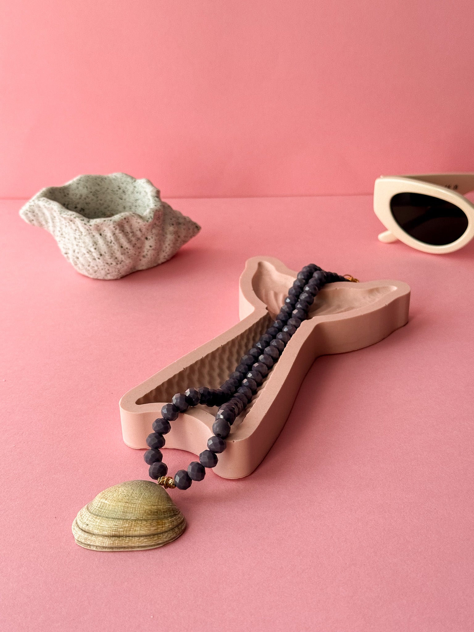 Inspired by the soft colours of the sea, this handmade necklace features faceted stone beads paired with a natural scallop shell pendant.